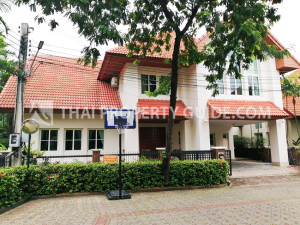 3 bedroom house for rent inside Nichada Thani short walk to International School of Bangkok (ISB). Comes unfurnished with equipped kitchen appliance